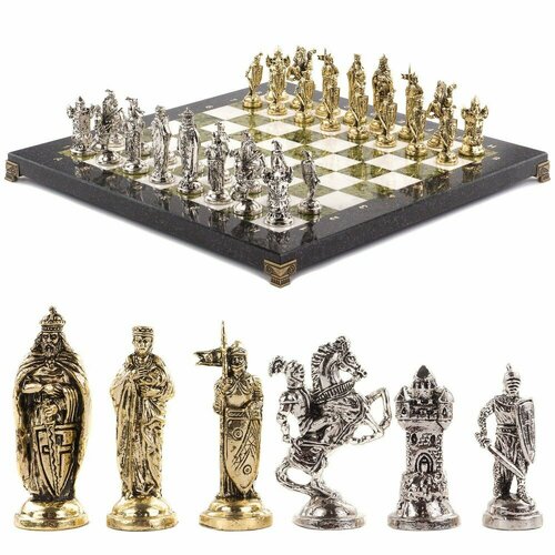 Шахматы подарочные "Рыцари крестоносцы" доска 44х44 см камень мрамор змеевик