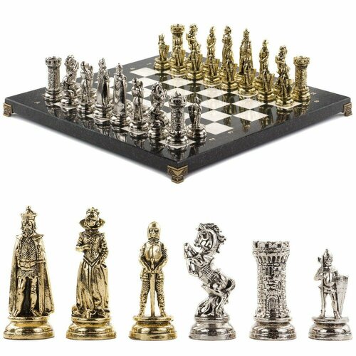 Шахматы настольные "Средневековые рыцари" доска 44х44 см из камня мрамор