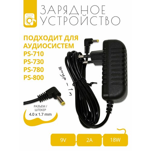 Зарядка 9V - 2A для аудиосистем PS-710, 730, 770, 800 с разъемом 4.0х1.7, шнур 1м