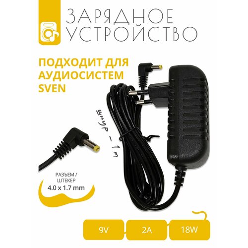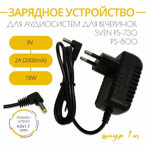 Зарядное устройство 9V 2A для аудиосистем для вечеринок SVEN с разъемом 4.0х1.7, длина шнура 1 м