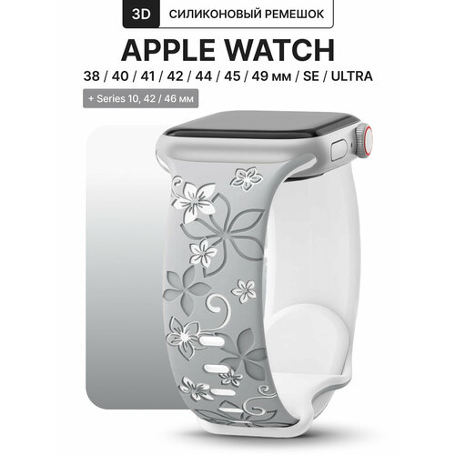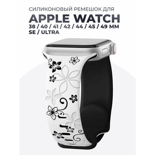 Ремешок для Apple Watch 42 44 45 46 49 мм, Se / Se 2 44 мм, Ultra / Ultra 2 49 mm с 3D рисунком, белый, черный