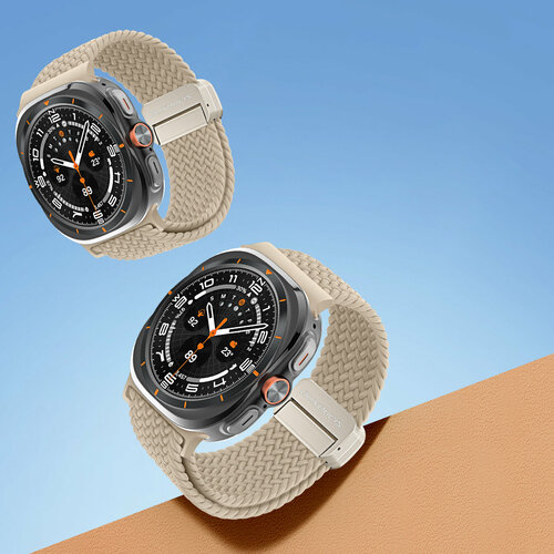 Эластичный ремешок серого цвета (Beige) от Dux Ducis для смарт часов Samsung Watch Ultra 47MM, серия Strap (Mixture Pro Series)