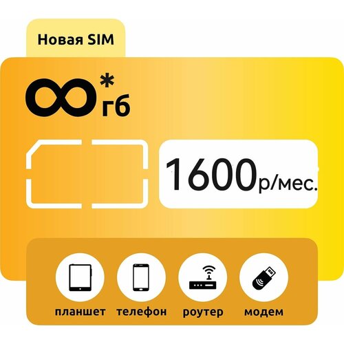 Сим-карта Безлимитный интернет 1000 ГБ за 1600 в месяц для любых устройств