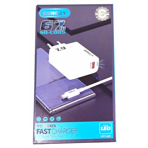 ЗУ сетевое Soncjy 67w быстрая зарядка с кабелем type-c белая
