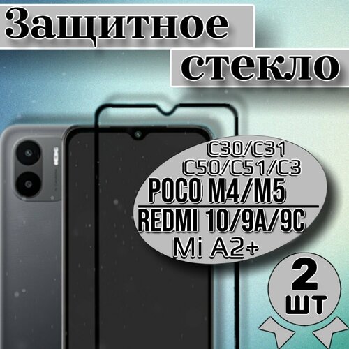 Защитное стекло для Xiaomi Redmi 10 5G//9A/9C/ POCO M4 5G/M5/C50/C51/C3/C30/C31 Mi A2+ с рамкой чёрный 2 шт