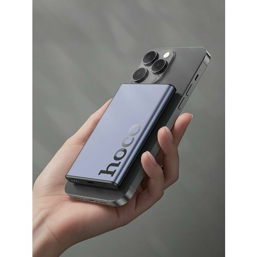 Повербанк беспроводной магнитный HOCO Q32 Bird PD20W POWER BANK для быстрой зарядки, 5000 мАч, серый металлик.