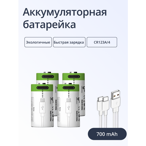 Аккумуляторные батарейки ABC перезаряжаемые Тип CR123A, 4 шт, емкость 700 mAh