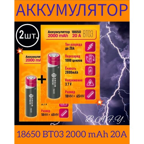 Аккумулятор 18650 BT03 2000mAh, 2 шт.