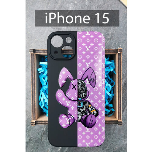 Силиконовый защитный чехол на iPhone 15 с принтом Заяц фиолетовый