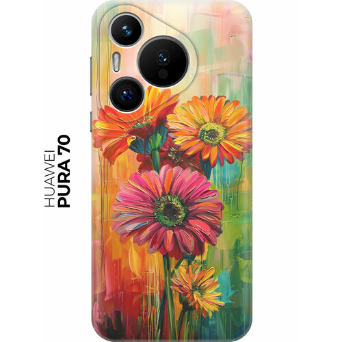 Силиконовый чехол на Huawei Pura 70 с принтом "Герберы гуашью"