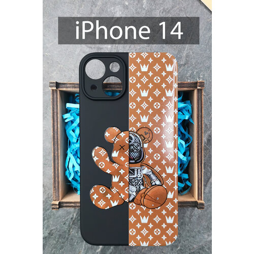 Силиконовый чехол на iPhone 14 с принтом коричневый Медведь для Айфон 14
