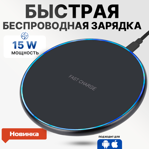 Беспроводная зарядка для айфона, 15Вт, сетевое зарядное устройство для телефона iphone, самсунг, android, xiaomi, чёрная