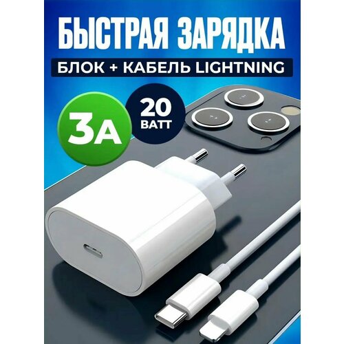 Зарядное устройство для iPhone с кабелем Lightning Type-C 20W, быстрая зарядка