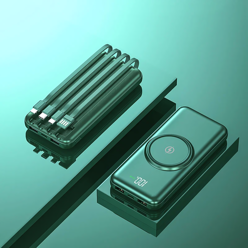 Портативный аккумулятор 30000 мАч, с беспроводной зарядкой, 4 кабеля, 3 дополнительных Usb-порта