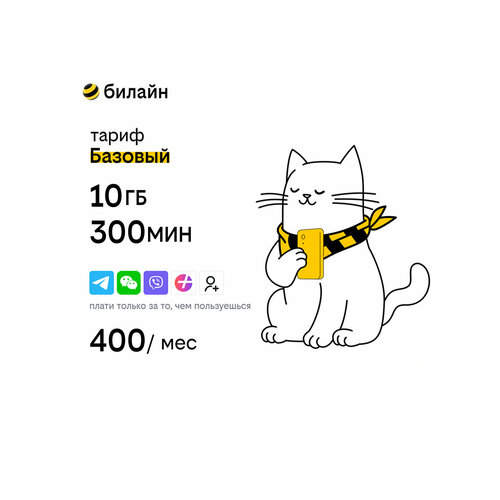 Сим карта sim-карта билайн тариф "Базовый", Республика Бурятия, 10 ГБ, 300 мин, баланс 300 р.