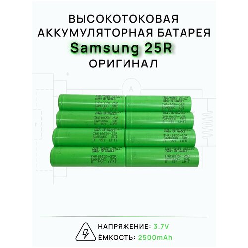 Аккумуляторная батарея Samsung высокотоковая - 8шт 25R, размерность 18650 2500 мАч 30А 3.7В