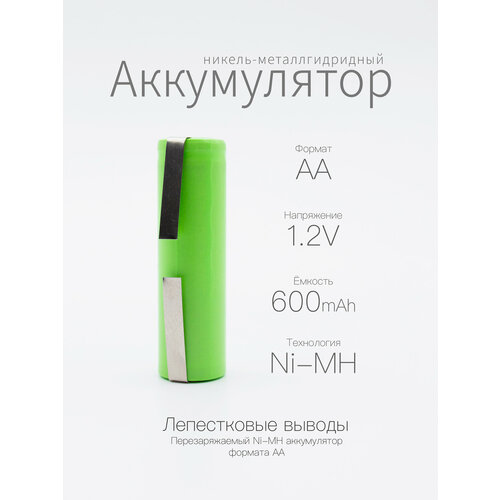 Аккумулятор BST 600АА, 1.2 В, 600 мАч, NiMH с лепестковыми выводами
