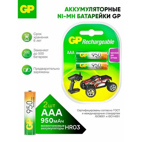 Аккумулятор Ni-Mh 950 мА·ч 1.2 В GP Rechargeable Series AAA, 2 шт.