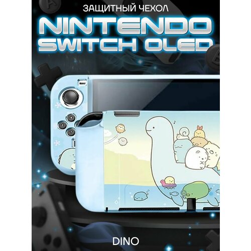 Защитный чехол для игровой консоли Nintendo Switch Oled TPU Blue Dinosaur