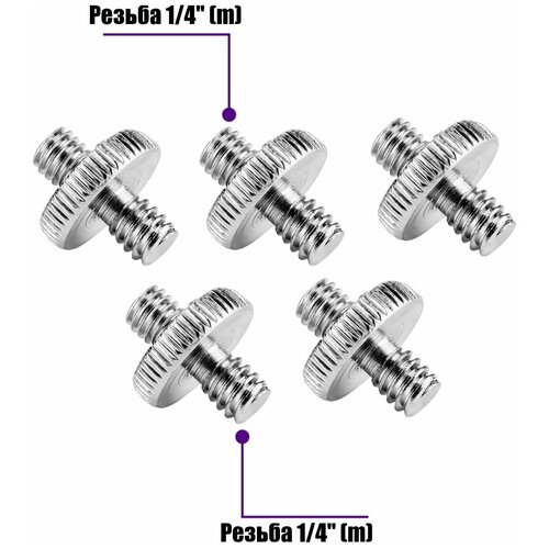 Резьбовой переходник 1/4"(M) - 1/4"(M) для штативов и микрофонных стоек, в комплекте 5 шт.