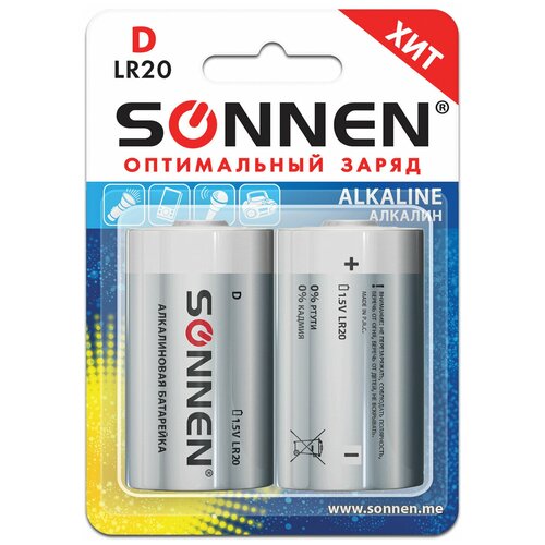 Батарейка SONNEN D LR20 оптимальный заряд, в упаковке: 2 шт.