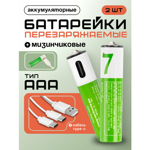Батарейки перезаряжаемые AAA (Li-ion) Type-C (2 шт) + кабель Type-C