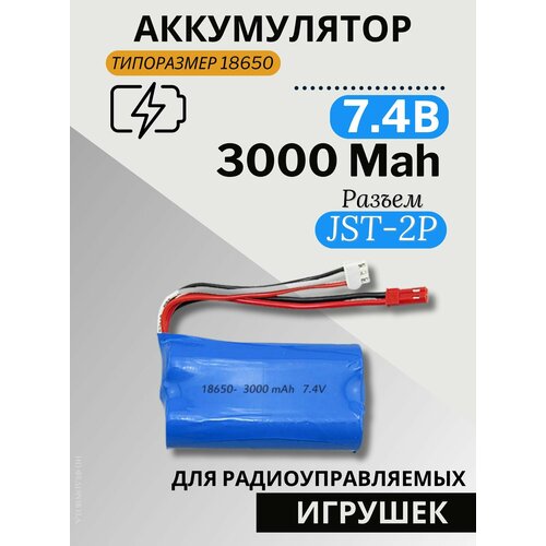 Аккумулятор 7.4V 3000mAh Li-Ion 18650, разъем JST-2P
