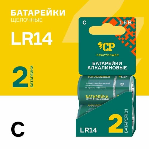 Батарейки мощные CRAZYPOWER 14А (LR14) C 1,5V щелочные (алкалиновые), 2 шт.
