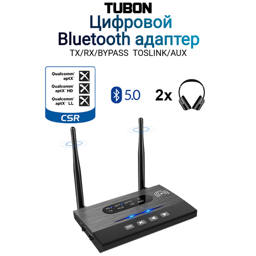 Адаптер Bluetooth Трансмиттер Ресивер Optical, TosLink, SPDIF, AUX. (CSR8675 AptX) B22 для двух наушников.