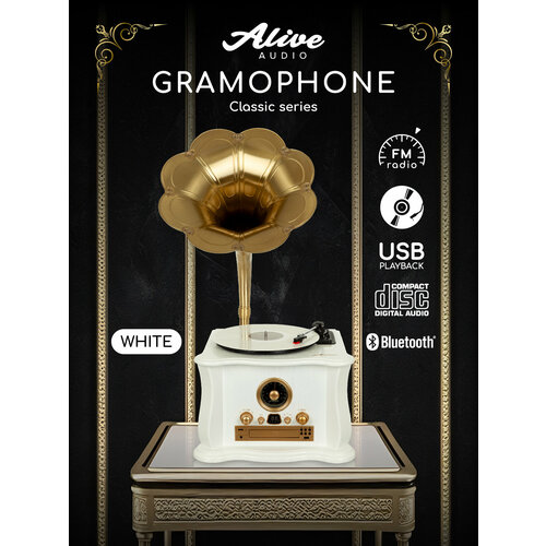 Виниловый проигрыватель Alive Audio Gramophone White (набор 2в1)