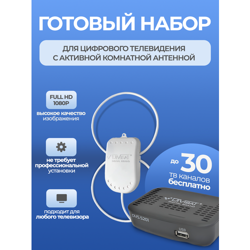 Антенна для цифрового тв комнатная TWIN 5м + тв приставка DIVISAT 3204, комплект готового цифрового тв