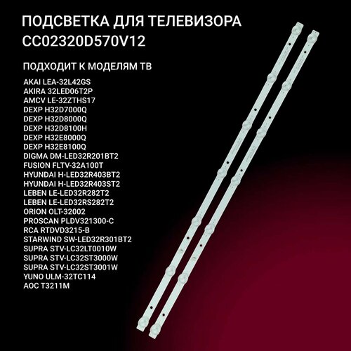 Подсветка CC02320D570V12 для H32E8000Q 32HS111X SW-LED32R301BT2 ULM-32TC114 DM-LED32R201BT2 LE-LED32RS282T2 LED32R282T2 H-LED32R403BT2 FLTV 32A100T