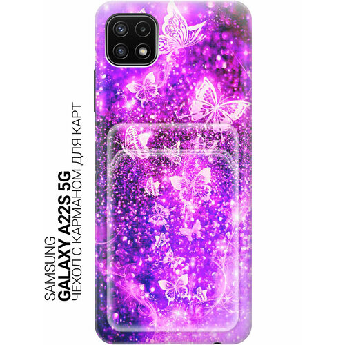 Силиконовый чехол на Samsung Galaxy A22s 5G / Самсунг А22с с рисунком "Фиолетовые бабочки" и карманом для карт