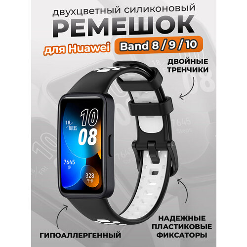 Двухцветный силиконовый ремешок для Huawei Band 8/9/10, черно-белый