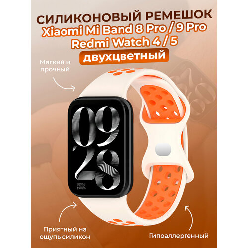 Двухцветный силиконовый ремешок для Xiaomi Mi Band 8 Pro/9 Pro и Redmi Watch 4/5, лунно-оранжевый