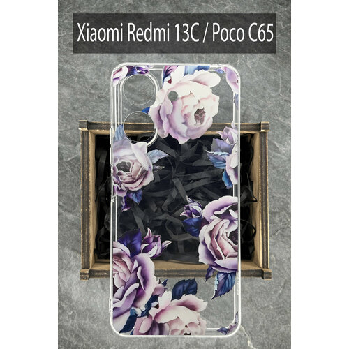 Силиконовый чехол на Xiaomi Redmi 13C с принтом Пионы Редми 13С