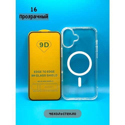 Комплект для iPhone 16 Plus : прозрачный чехол с MagSafe и анимацией + стекло 9D (полная защита)