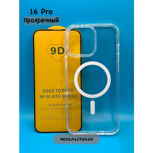 Комплект для iPhone 16 Pro : прозрачный чехол с MagSafe и анимацией + стекло 9D (полная защита)