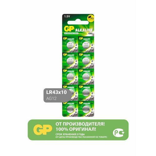 Батарейка GP Alkaline Cell 186 LR43, в упаковке: 10 шт.