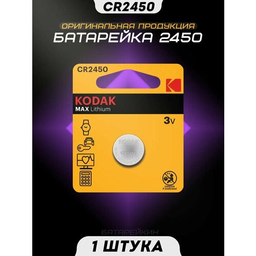 Батарейка литиевая Kodak Max, CR2450-1BL, 3В, блистер, 1 шт.