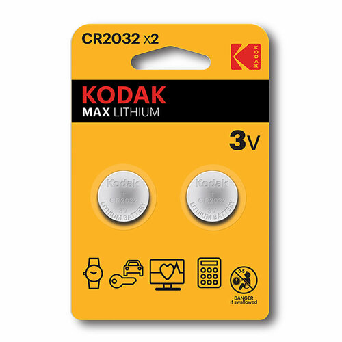 CR2032 Kodak батарейки литиевые плоские, 3В, 210 мАч, 2 штуки в упаковке