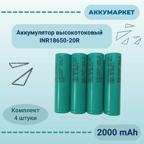 Аккумулятор INR18650-20R 2000 mAh Li-ion высокотоковый, комплект 4 штуки