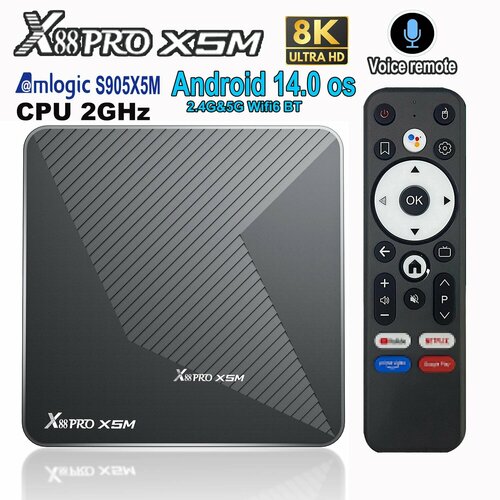 X88 PRO X5M Android 14 ТВ-бокс Amlogic S905X5M процессор 2,0 ГГц HDR 8k двойной Wi-Fi 2,4G 5G BT5.0 1000M