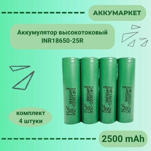 Аккумулятор INR18650-25R 2500 mAh Li-ion высокотоковый, комплект 4 штуки
