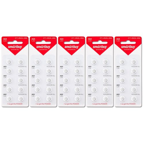Батарейка LR66 (AG4, 377, 626) 1.5V SmartBuy Blister, упаковка 50 шт.