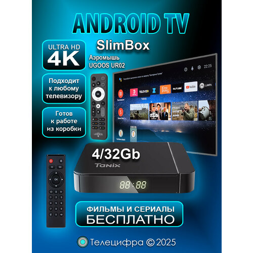Tanix W2 4/32 + UR02. Медиаплеер с прошивкой SlimBox ATV 4/32 4K /Android 11/WI-FI 2.4&5G + аэромышь