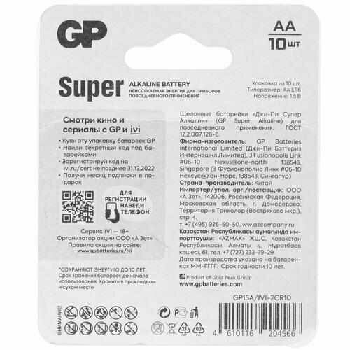 Батарейки AA пальчиковые GP Super (10 штук в упаковке).