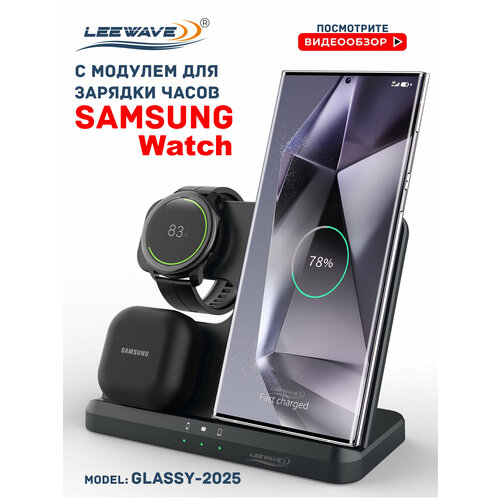 Беспроводная зарядка 3 в 1 для SAMSUNG, док станция QI (модель GLASSY-2025) Черная