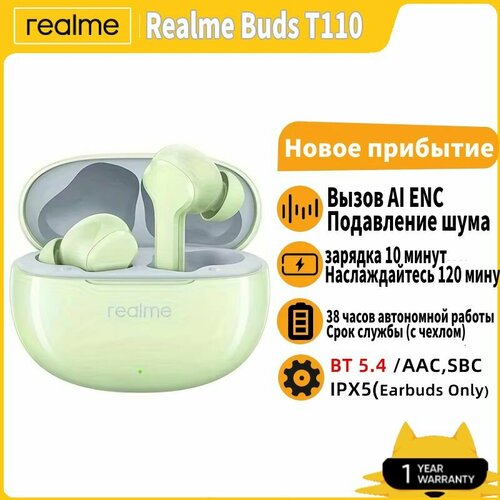 Наушники Realme Buds T110 TWS Bluetooth 5.4, Беспроводные наушники с функцией отмены чужих вызовов, 38 часов автономной работы, IPX5