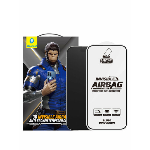 BlueO стекло для iPhone 16 Pro, 3D Anti-broken Edge Anti-Static Black (силик. кромка)